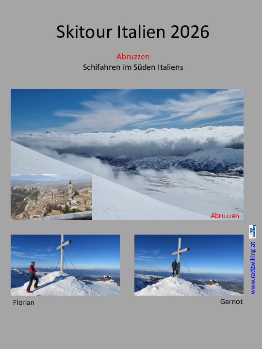 - Skitour: Skitourenwoche in den Abruzzen --> da in den Abruzzen zu wenig Schnee liegt, fahre ich ins Piemont!